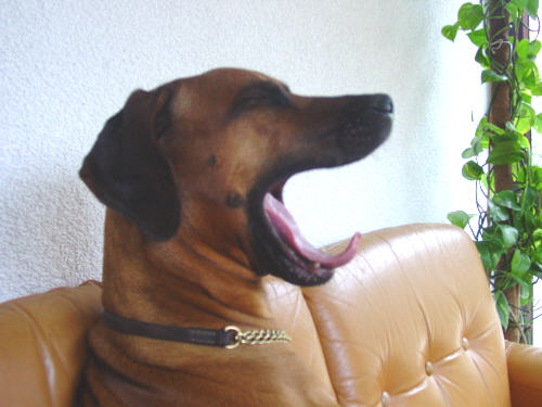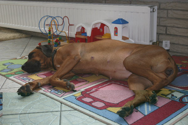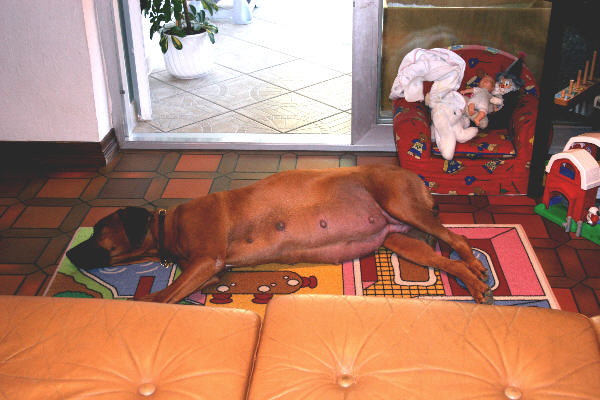 Und sehr verschlafen, wie es einer trächtigen Hündin gegönnt sein darf.