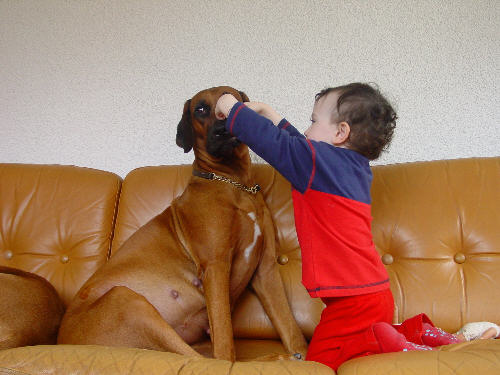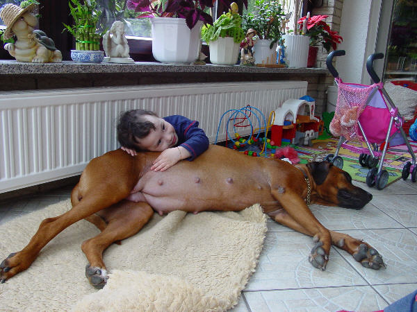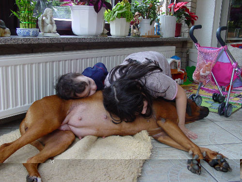 22. April 2006 - 44. Tag Am 44. Tag von Thani´s Trächtigkeit haben unsere Kinder erst mal gehorcht was da so in ihrem Bauch vorgeht :-)