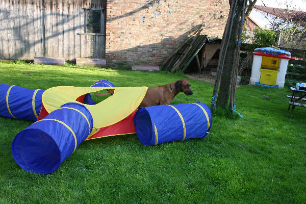 ... und gleich eines der vielen Welpenattraktionen genau untersuchen musste.