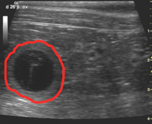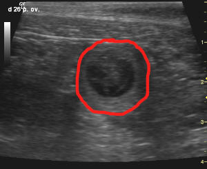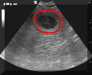 Hier ein paar von den Ultraschallbildern. Die mit rot umrandete Fläche