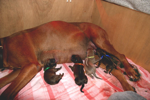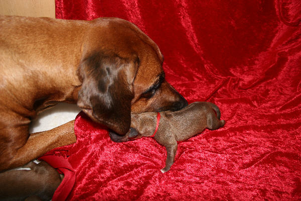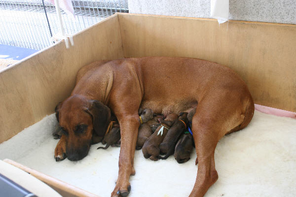 ihre Wurfkiste mit der liebevollen Mama, die am 10. Mai eine