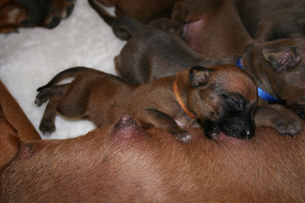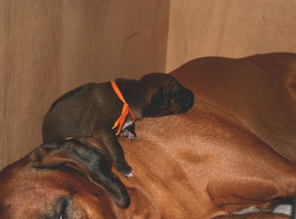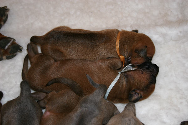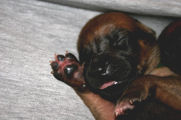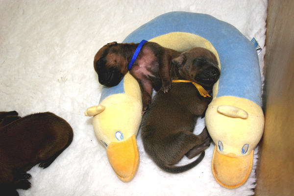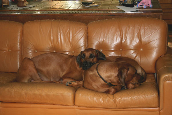 Djambo und Thani kuscheln wieder, wenn die Welpen schlafen.