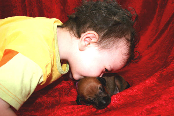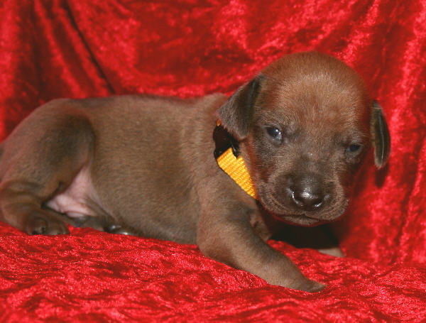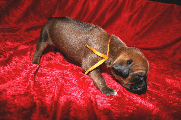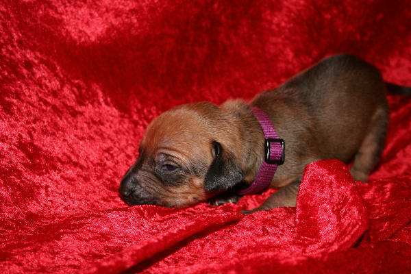 Die Welpen haben nun ihre Halsbänder bekommen,