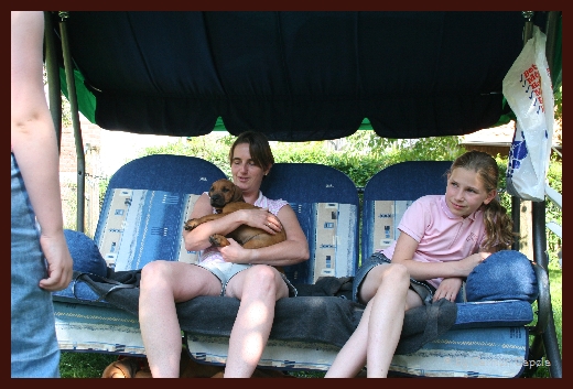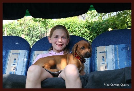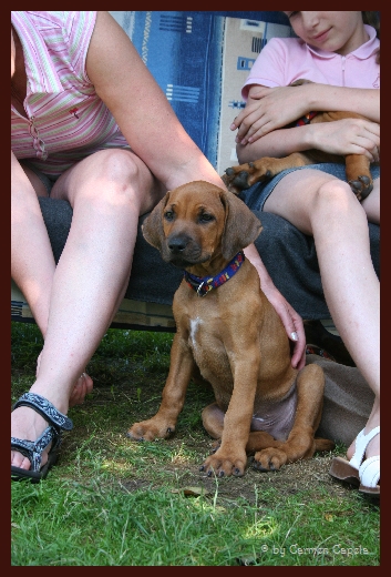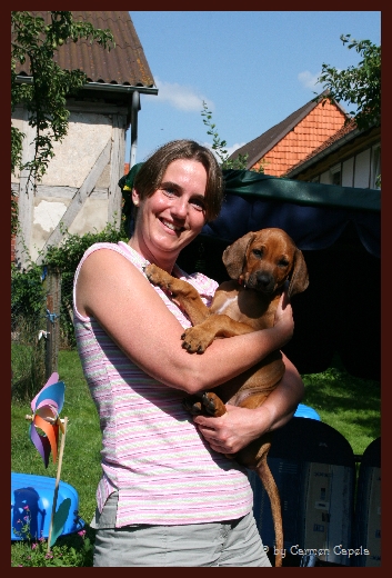 Sibylle und Jasmin Meil nutzten ein Deutschlandbesuch aus, um auch uns und unsere kleinen Welpen zu besuchen. Zur Zeit wohnen sie in der USA/Brookfield wo sie selber mit Dr. Jörg Meil und den beiden Ridgebackdamen Imara Jabali Donner, der Schwester von unserem Djambo, und Glenaholm Jola, der Halbschwester von unserer Thani zusammen leben.